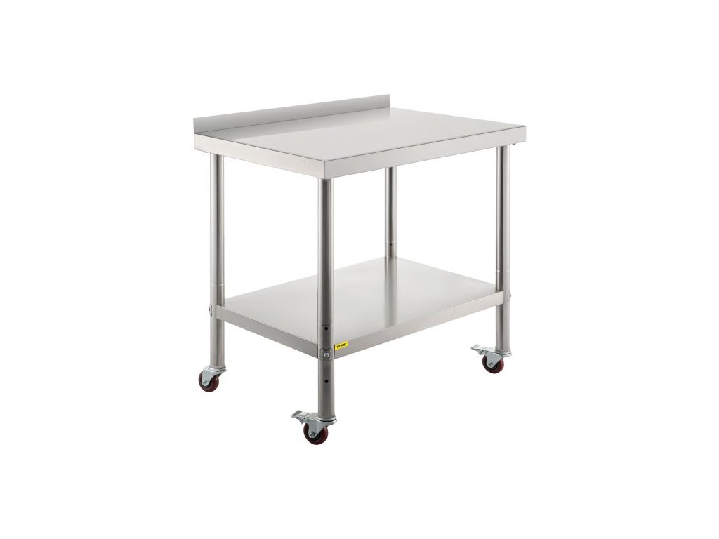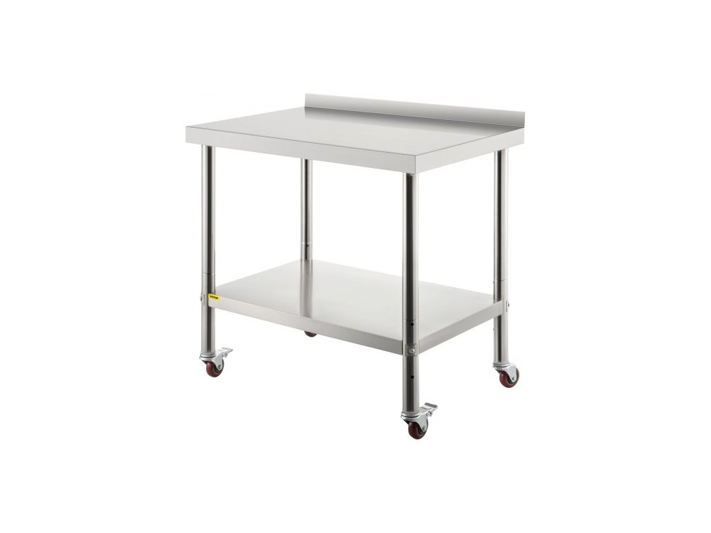 Nerezový přípravný stůl , 91 x 61 x 89 cm, nosnost 200 kg, těžký kovový pracovní stůl s obkladem, nastavitelnou spodní policí a 4 kolečky, komerční pracovní stanice do kuchyně a restaurace