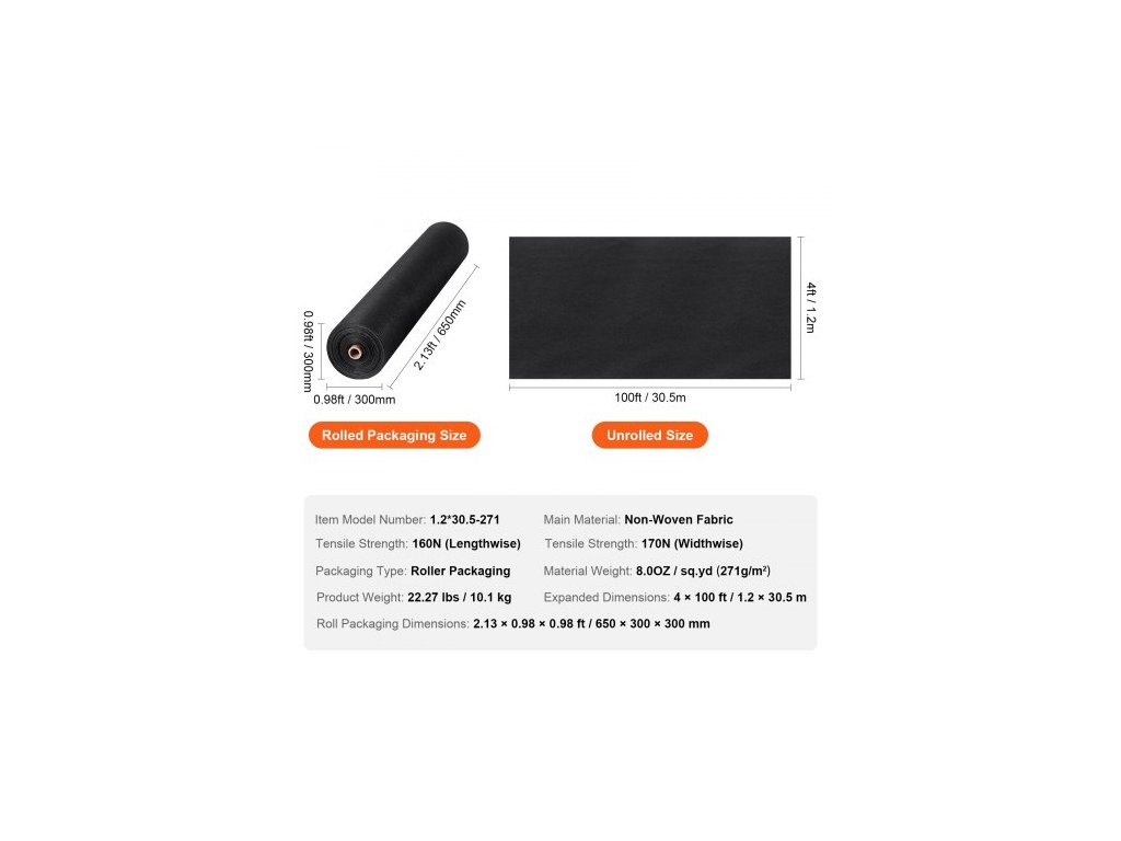 Pevnost v tahu: 170 N (na šířku),Rozměry balení v roli: 2,13 x 0,98 x 0,98 stop / 650 x 300 x 300 mm,Typ balení: Balení v roli,Číslo modelu položky: 1,2*30,5-271,Hmotnost výrobku: 22,27 lbs / 10,1 kg,Rozměry v rozloženém stavu: 4 x 100 stop / 1,2 x 30,5 m, Hlavní materiál: Netkaná textilie, Hmotnost materiálu: 8OZ/sq.yd (271g/m^2)