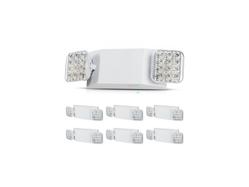 Nouzové osvětlení , sada 6 ks, komerční, 3W, bílé LED, nouzové východové osvětlení s výdrží baterie 180 minut, nastavitelná 2 LED čtvercová hlava, stropní nebo nástěnná montáž pro výpadky proudu ve firmách.