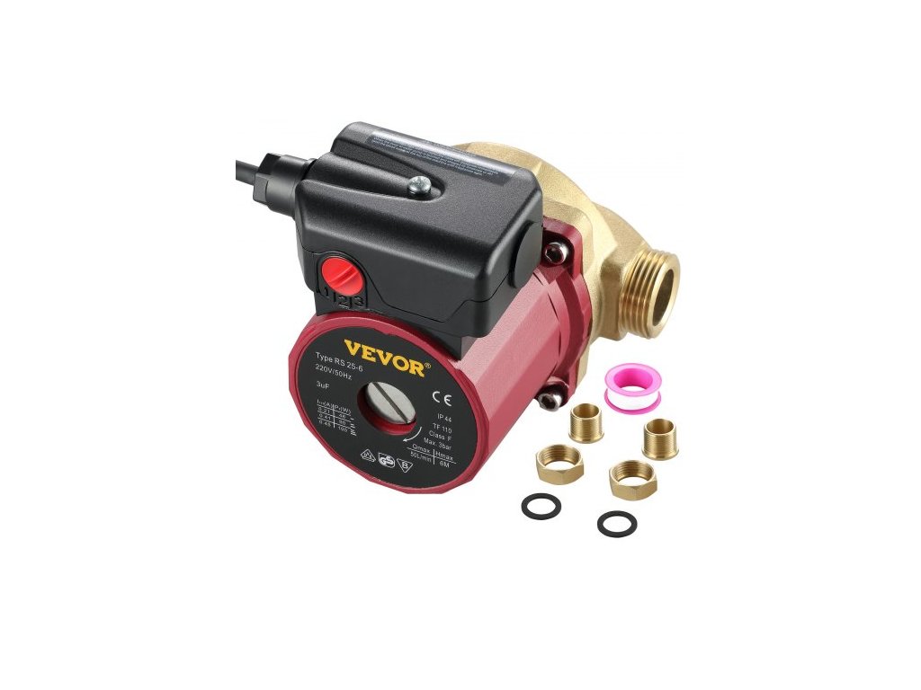 Těleso čerpadla: Litina, Stupeň krytí: IP42, Tichý provoz: < 45 dba, Napětí: 220 V 50 Hz, Přípojka: 1 palec (25,4 mm), Max. průtok: 50 l/min, Třída izolace: H, Rozsah teploty kapaliny: 2–100 °C, Max. dopravní výška: 6 m (19,7 stop), Hlava čerpadla: Mosaz