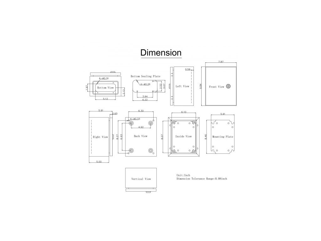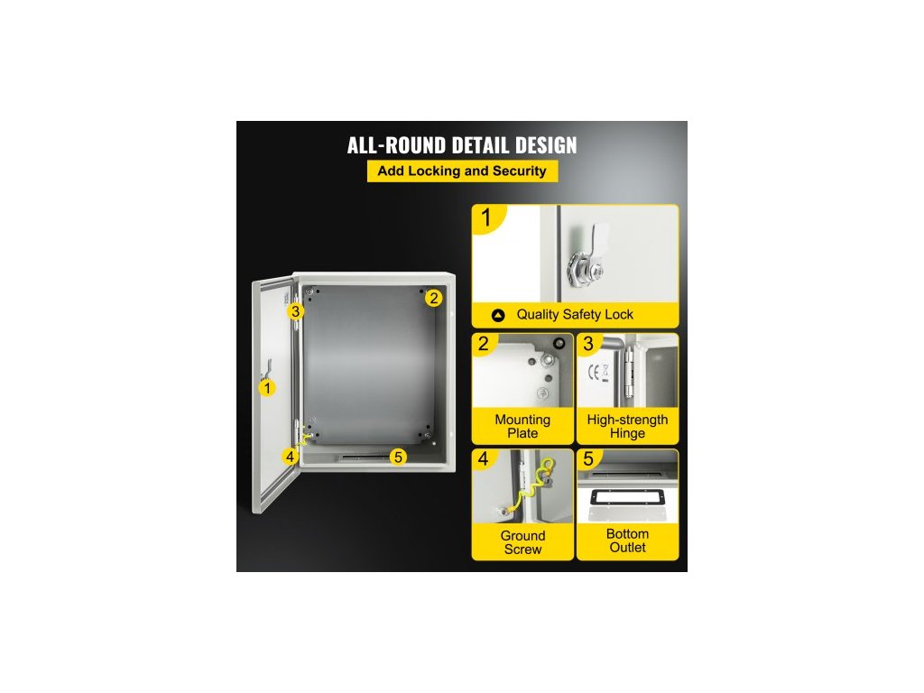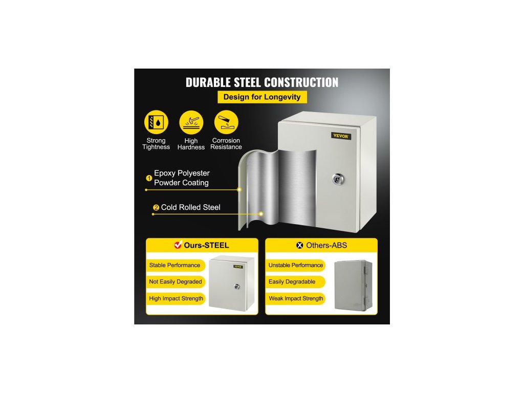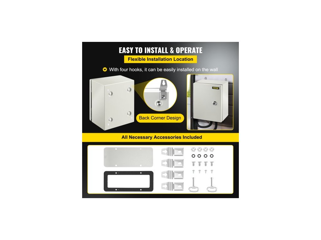 Ocelová skříň NEMA, 25x20x15 cm elektrická krabice z oceli NEMA 4X, vodotěsná a prachotěsná, venkovní/vnitřní rozvodná krabice, s montážní deskou