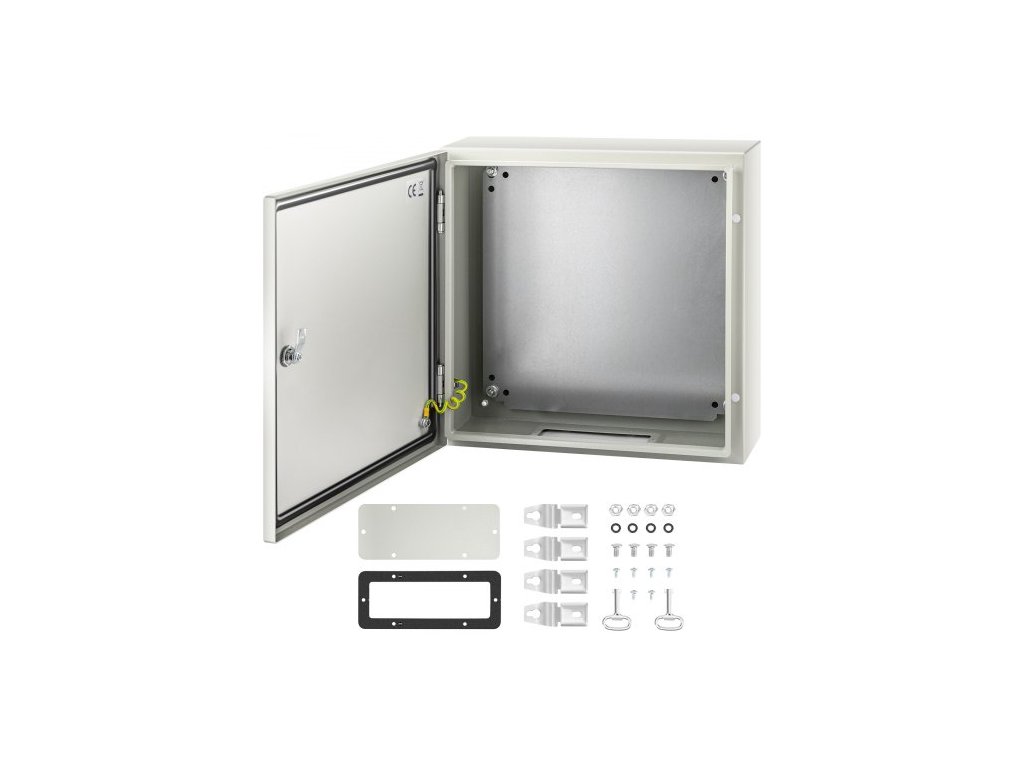 Ocelová skříň NEMA, 50x50x15 cm elektrická krabice z oceli NEMA 4X, IP66 vodotěsná a prachotěsná, venkovní/vnitřní elektrická rozvodná krabice, s montážní deskou