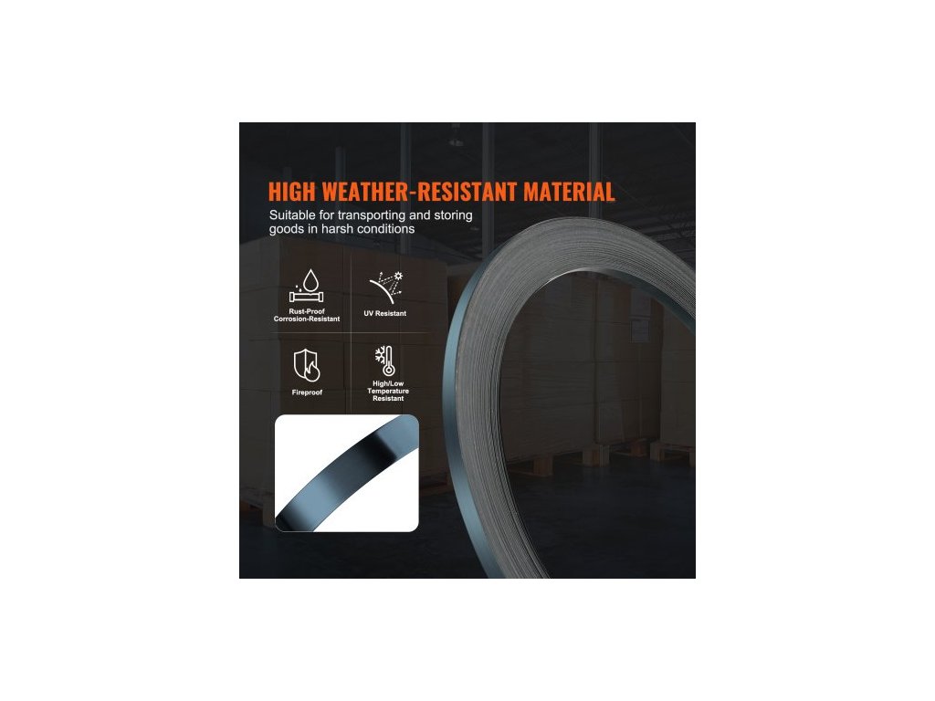 Ocelová páska Packaging, délka 330' x šířka 1/2" x tloušťka 0,016", pevnost v tahu 1100 lbs, cívka pásky pro silné páskování palet, přenosná silná páskovací balicí kovová páska, černá