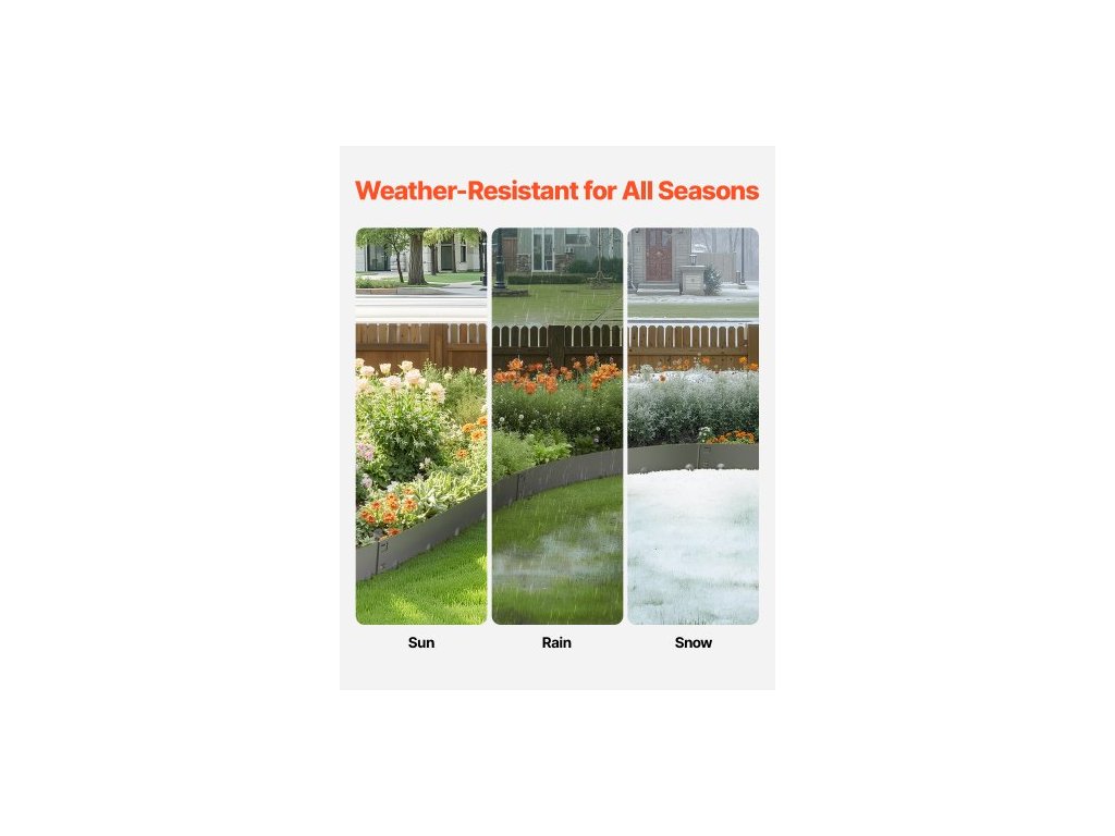 Ocelové zahradní obruby , balení 5 kusů, kovové zahradní obruby odolné proti korozi, ohýbatelné zahradní obruby, odolné obruby trávníku, snadno se instalují, dělicí záhon, tmavě šedá