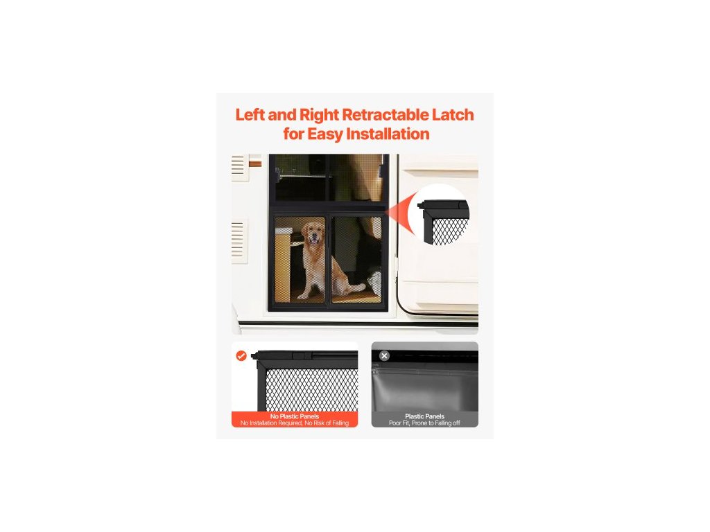 Ochranná síťovina na dveře obytného vozu , mřížka dveří 673,1 x 508 mm, snadná instalace a demontáž, zesílená prodyšná ochranná síťovina, ochrana vstupu do obytného vozu z hliníkové slitiny pro ochranu domácích mazlíčků, černá