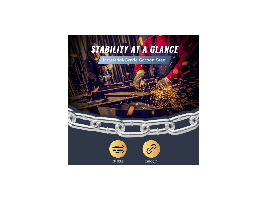 Nosnost: 1980 lbs/898 kg,Číslo modelu položky: 8x1,8M,Povrchová úprava: Pozink,Hmotnost výrobku: 4,74 lbs/2,15 kg,Materiál: Uhlíková ocel,Délka řetězu: 6 ft/1,8 m,Mezní nosnost: 5000 lbs/2268 kg,Průměr řetězu: ?0,28 in/7,3 mm