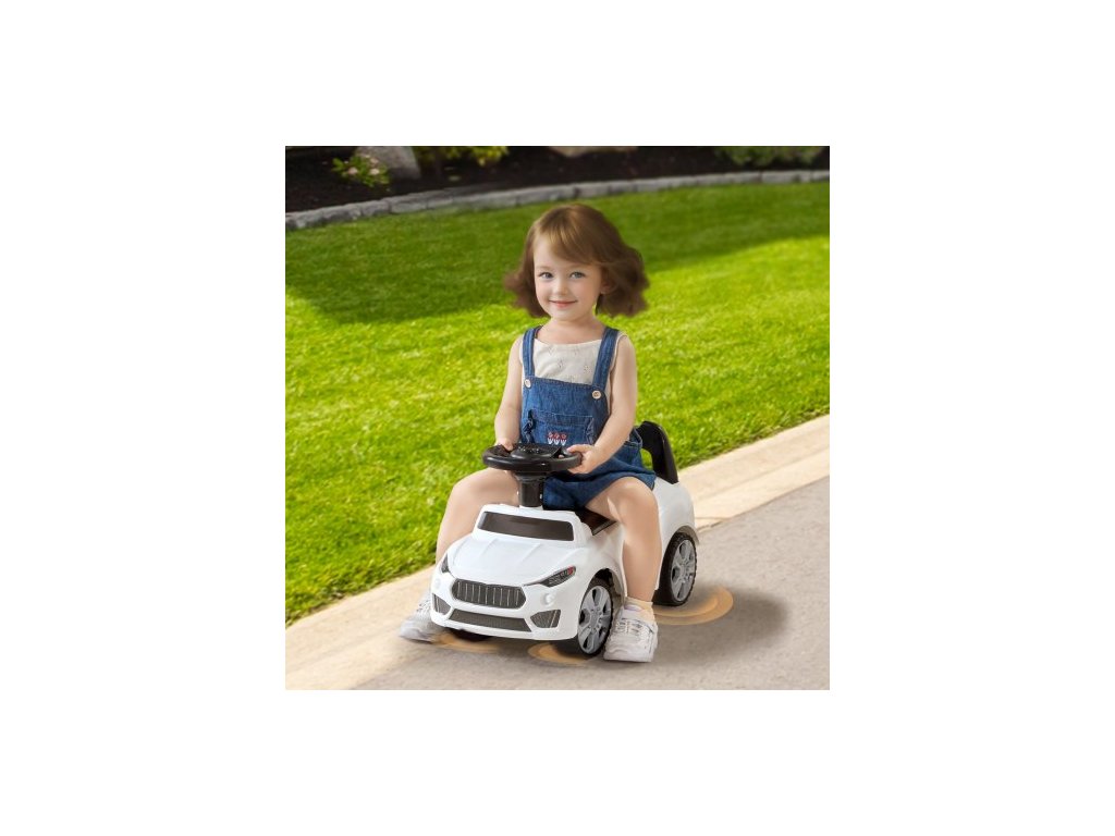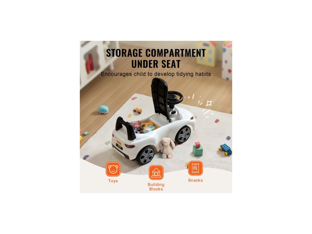 Odrážedlo pro batolata, věk 1-3 roky, Ride Racer, Odrážedlo pro batolata s možností sezení a stání, Klasické dětské autíčko s hudebním volantem a úložným prostorem pod sedadlem, Odrážedlo pro chlapce a dívky, Bílá