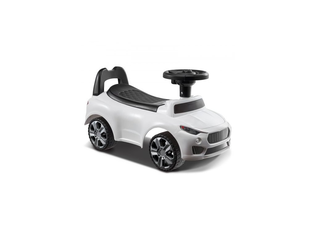 Odrážedlo pro batolata, věk 1-3 roky, Závodní auto, Odrážedlo pro batolata s možností sezení a stání, Klasické dětské odrážedlo s hudebním volantem a úložným prostorem pod sedadlem, Odrážedlo pro chlapce a dívky, Bílá
