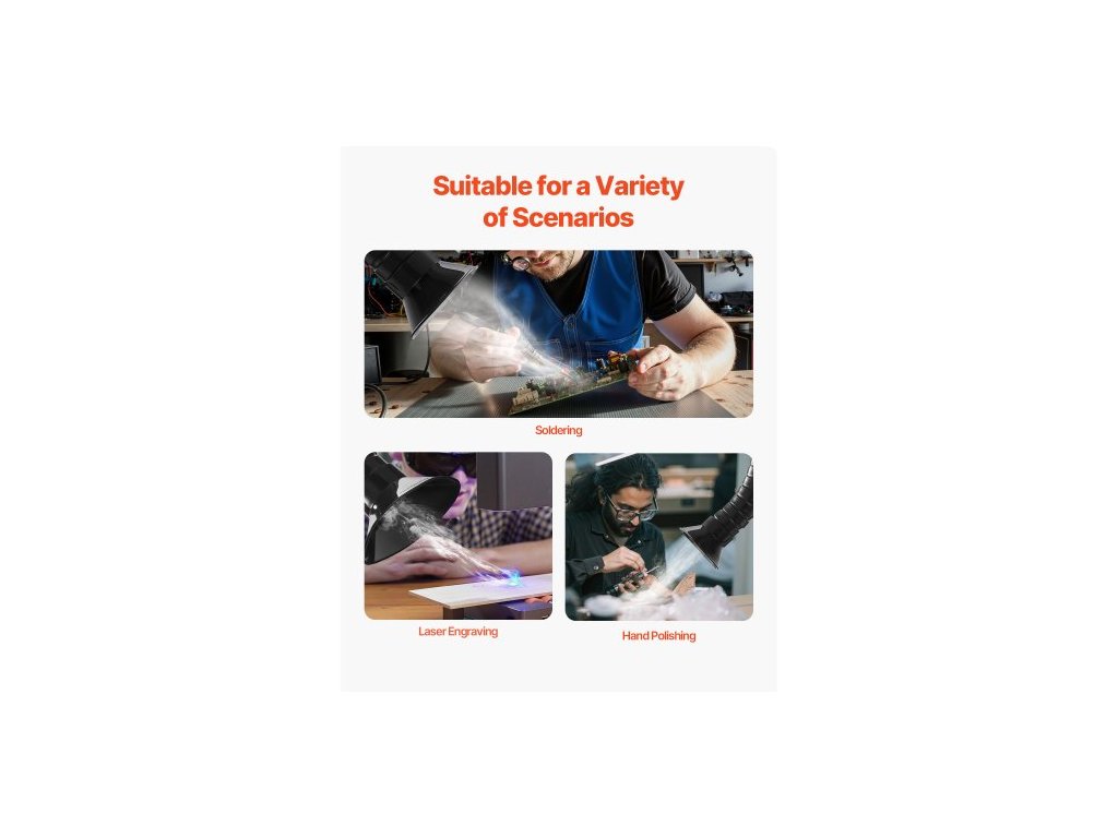 odsávač pájecích výparů s dvojitými hadicemi, 275W bezkartáčový pohlcovač pájecích výparů se 4stupňovými filtry a 10 rychlostmi, silný sací výkon 380 m3/h pro pájení, laserové gravírování a svařování