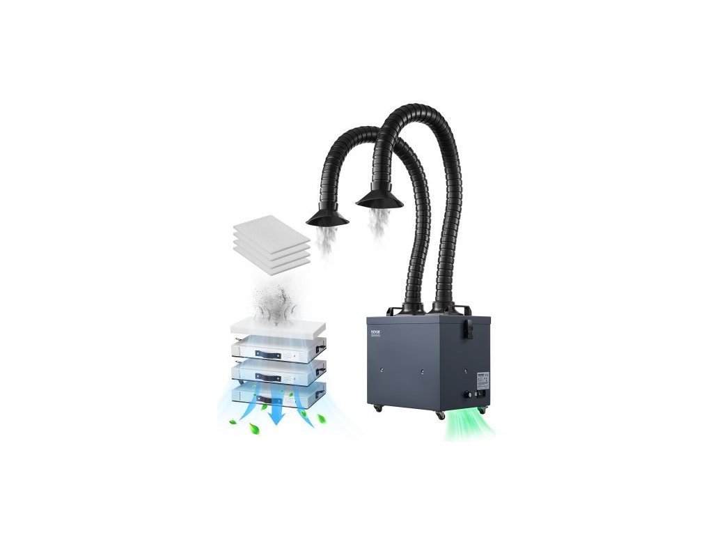 odsávač pájecích výparů s dvojitými hadicemi, 275W bezkartáčový pohlcovač pájecích výparů se 4stupňovými filtry a 10 rychlostmi, silný sací čistič kouře 380 m3/h pro pájení, laserové gravírování, kutilské svařování