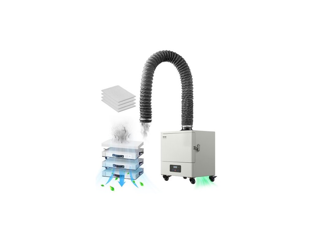 Odsavač pájecích výparů, silný sací výkon 459 m3/h, pohlcovač pájecích výparů s bezkartáčovým motorem 280 W, 4stupňové filtry, 10stupňový a dálkově ovládaný čistič kouře pro pájení, gravírování a kutilské svařování