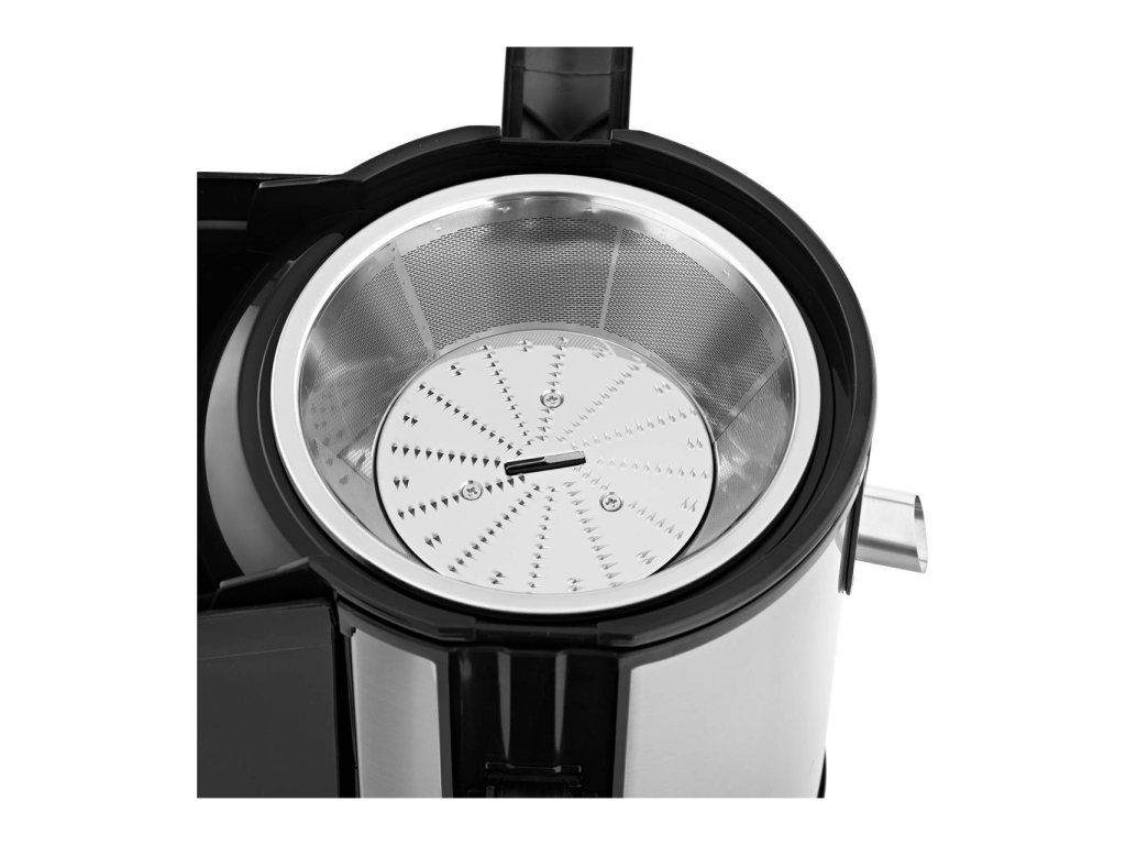 Díky ušlechtilé oceli odpovídá nejvyšším gastronomickým standardům a jeho čištění je mimořádně snadné. Džusovač má sběrnou nádobu na zbytky a odpad o objemu 2 l, aby bylo možné lisovat velké množství ovoce a zeleniny. Díky otvoru o velikosti 85 mm mm se do zařízení vejde většina ovoce a zeleniny.