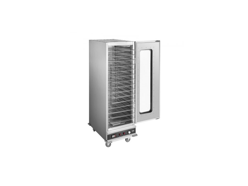 Ohřívač jídla Hot Box, 16patrový velký ohřívač jídla s vodní miskou, jednokřídlé skleněné dveře a nastavitelné police, nerezová ohřívací skříňka na jídlo, ideální pro skladování pizzy, kuřete, restaurace
