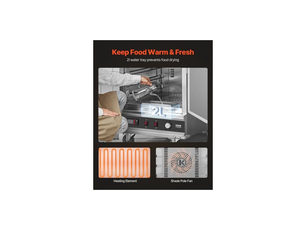 Ohřívač potravin Hot Box, 16patrový velký ohřívač potravin s vodní miskou, jednokřídlé dveře a nastavitelné police, nerezová skříň na ohřívání potravin, ideální pro skladování pizzy, kuřete, restaurace