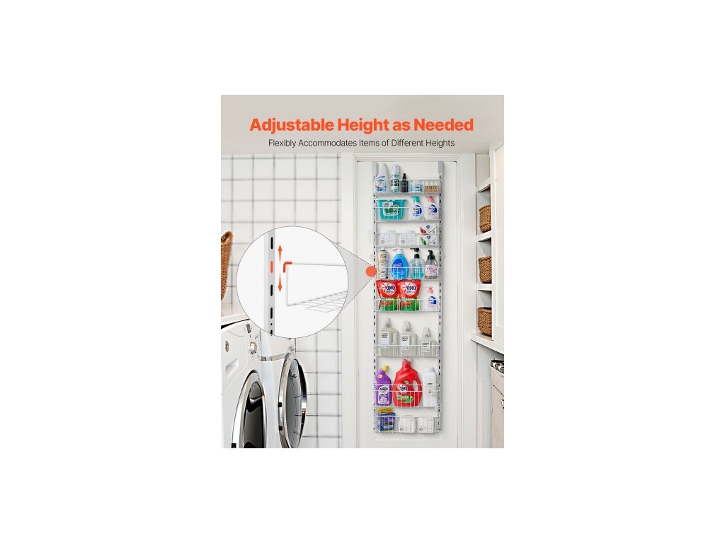 Organizér na spíž přes dveře, 8patrový organizér a úložný prostor, odolný ocelový závěsný stojan na koření, nastavitelné nástěnné police na koření, pro domácí kuchyň, prádelnu, koupelnu, bílý
