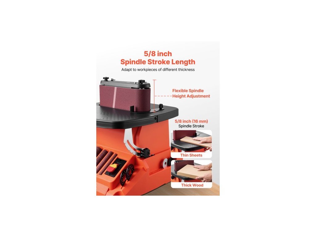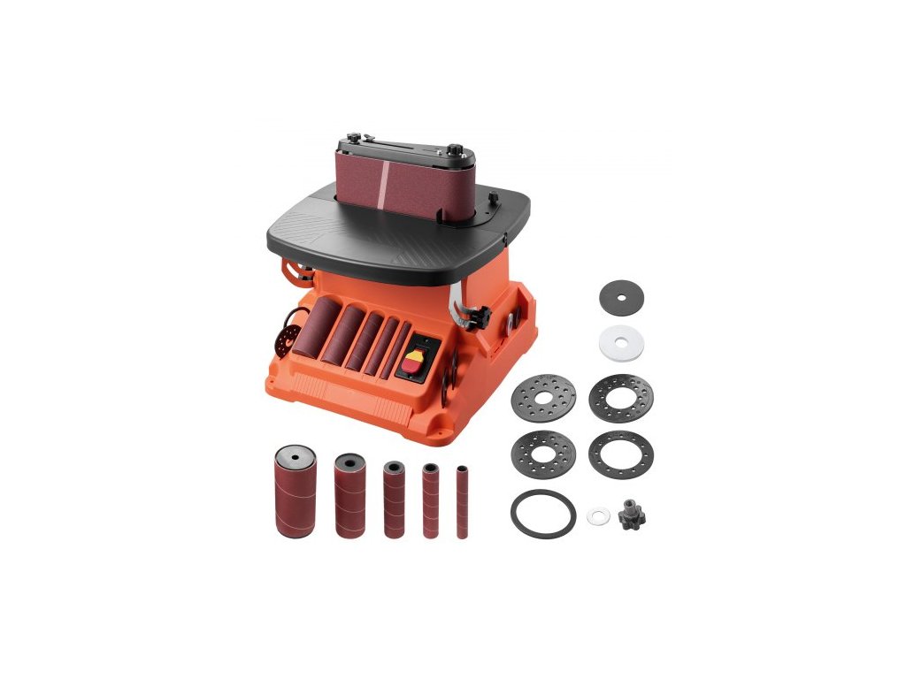 Oscilační pásová a vřetenová bruska , stolní vřetenová bruska 2000 ot./min. se zdvihem 16 mm, 5 objímkami (12,7–50,8 mm) a brusným pásem 610 x 98 mm pro obrábění dřeva, broušení nábytku a kutilské projekty