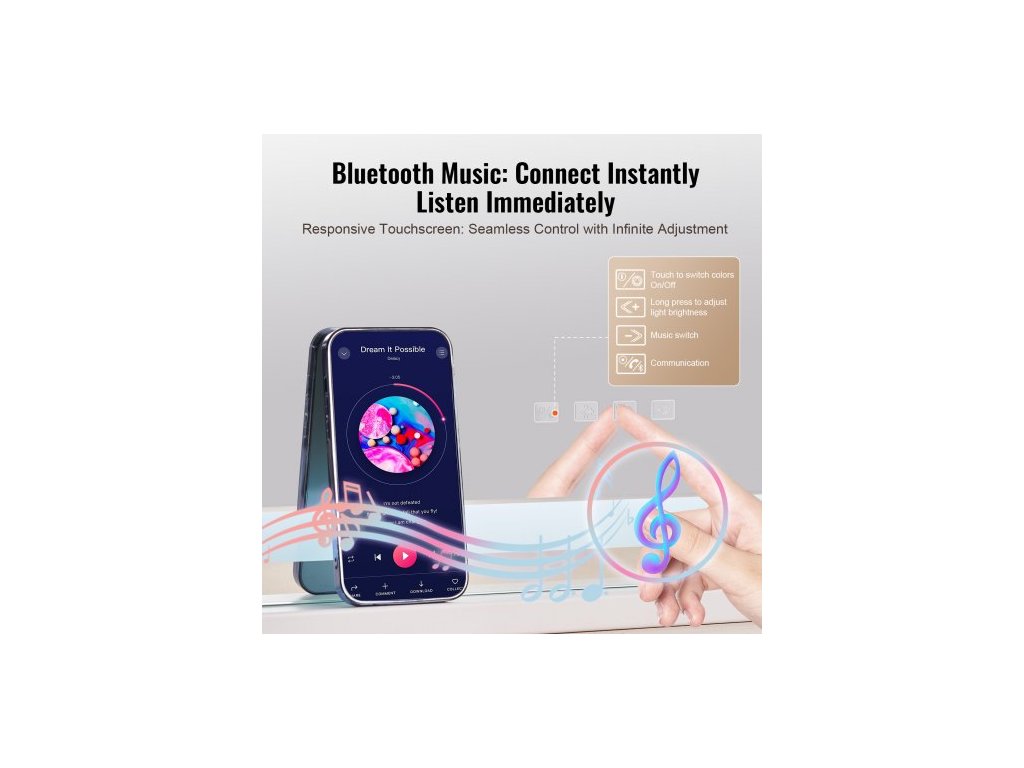 Osvětlené kosmetické zrcátko, 3 barvy, Bluetooth, USB, stolní, nástěnný držák, 55,1 cm