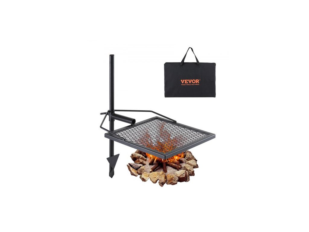 Otočný gril na táborák , odolný ocelový rošt na otevřené ohniště, nastavitelný