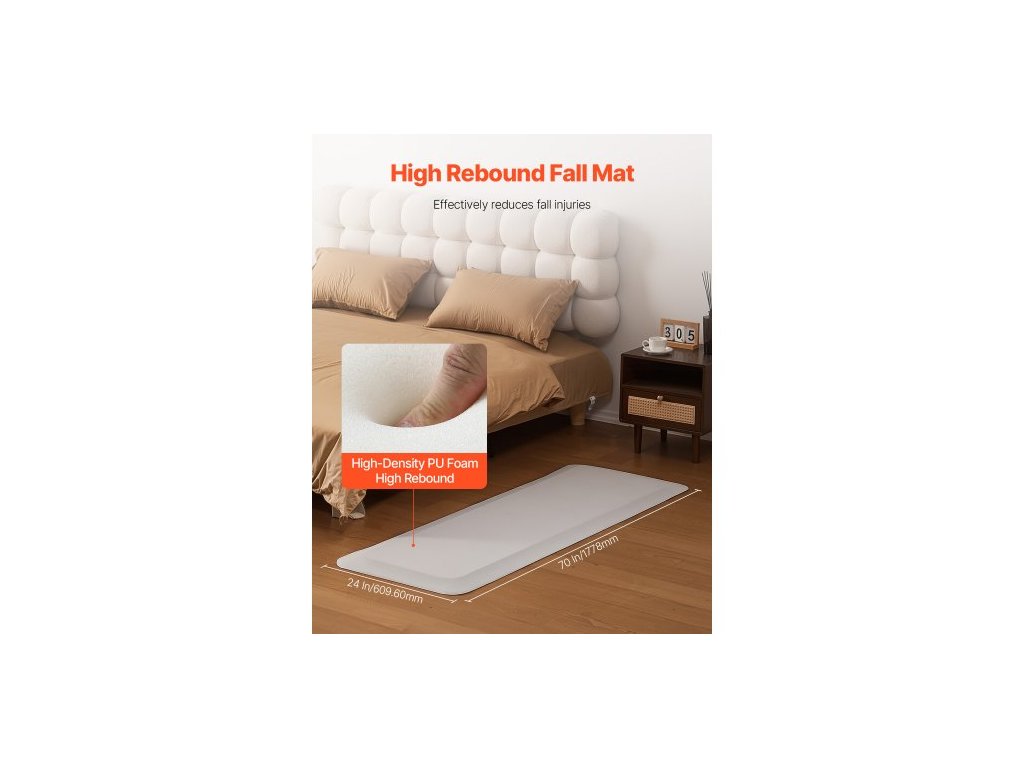 Pádová rohož pro seniory, 3/4palcová zesílená podložka na prevenci pádů se zkoseným okrajem, protiskluzová bezpečnostní rohož k lůžku pro seniory, osoby se zdravotním postižením a pacienty (24 x 70 palců)