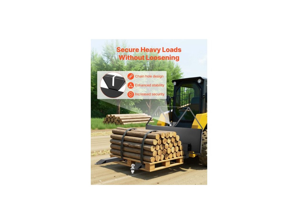Jmenovitá nosnost: 2600 lbs / 1179 kg,Rozměry montážní desky: 45,7 x 5,7 x 32,4 palce / 1160 x 145 x 822 mm,Rozměry výrobku: 50 x 45,7 x 35,6 palce / 1270 x 1160 x 905 mm,Vzdálenost vidlí: 21 palců / 532 mm,Tloušťka vidlice: 50,76 mm,Použitelná délka vidlice: 905 mm,Rozměr koule tažného zařízení: 47,6 mm,Šířka jedné vidlice: 100 mm,Celková délka vidlice: 1220 mm,Číslo modelu položky: WBS-027,Hmotnost výrobku: 63,3 kg,Kompatibilní vozidlo: Univerzální smykem řízený nakladač,Hlavní materiál: Q235A + povrchová úprava