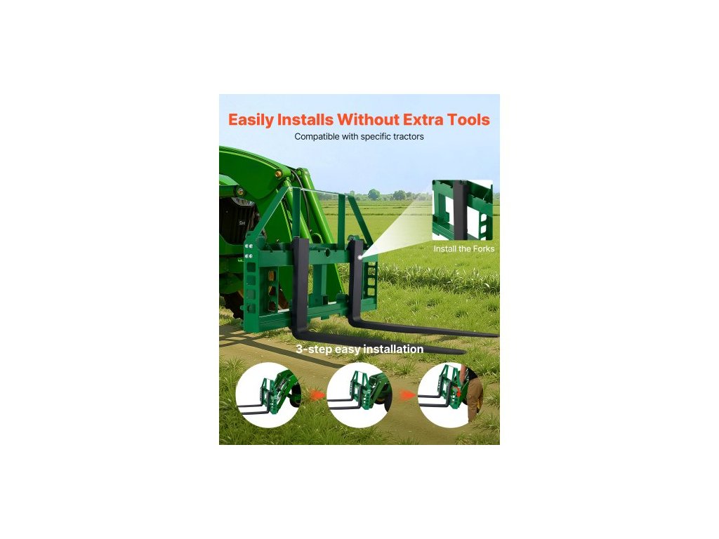 jmenovitá nosnost: 4000 lbs / 1814 kg, rám vidlí: 126,8 lbs / 57,5 kg, hroty vidlí: 171,7 lbs / 77,9 kg, rozměry montážní desky: 50 x 5,9 x 29,6 palce / 1270 x 150 x 752 mm, připojení vidlí na seno: 3, Tloušťka: 35 mm, Délka: 1065 mm, Velikost uchycení tažného zařízení: 50,8 mm, Rozměry vidlic:, Číslo modelu položky: WBS-031, Hmotnost výrobku:, Krátká strana: 545 mm, Nastavitelný rozsah vzdálenosti vidlic: 250–1255 mm, Šířka: 99,5 mm, Kompatibilní vozidlo: Specifický traktor, Hlavní materiál: Q235A + povrchová úprava