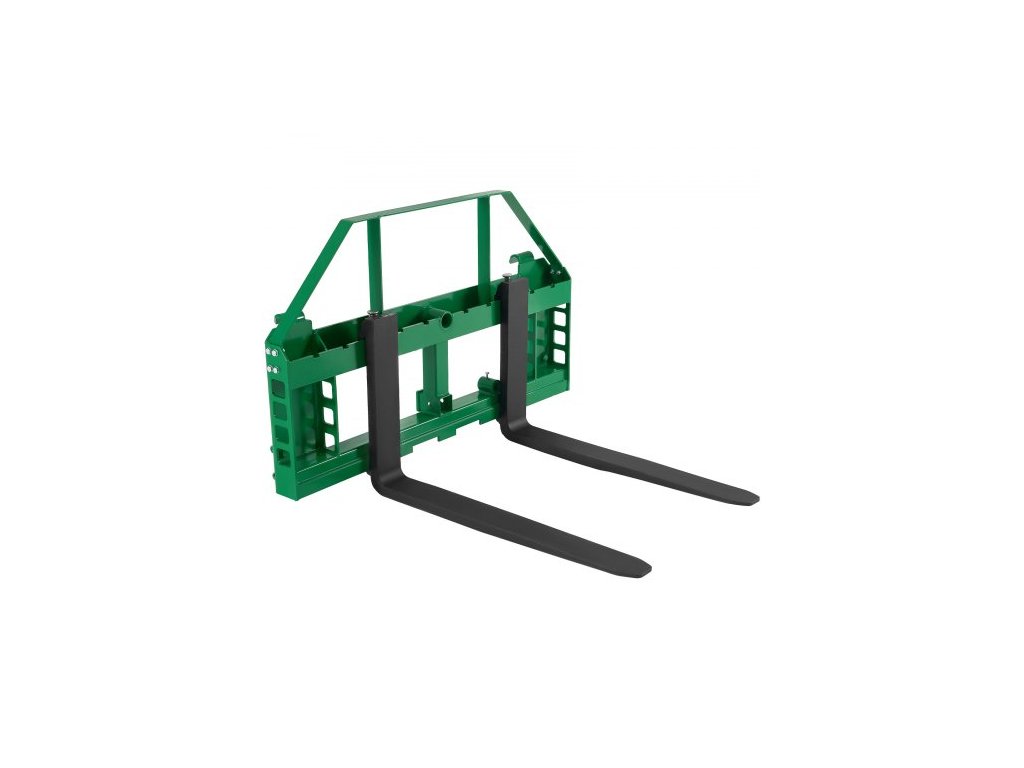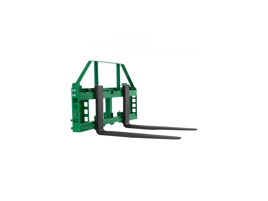 Paletové vidle pro smykem řízené nakladače, jmenovitá nosnost 1814 kg, uchycení rámu paletových vidlí s radlicemi pro vysokozdvižný vozík 1065 mm, uchycení a objímky pro závěs 50,8 mm, vhodné pro traktory JD