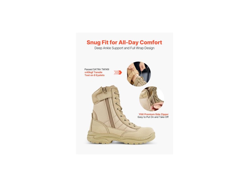 Pánské vojenské taktické boty , 203 mm turistické pracovní boty, lehké a prodyšné motocyklové boty s bočním zipem, pro venkovní bezpečnost, velikost UK 10, pískově zbarvené