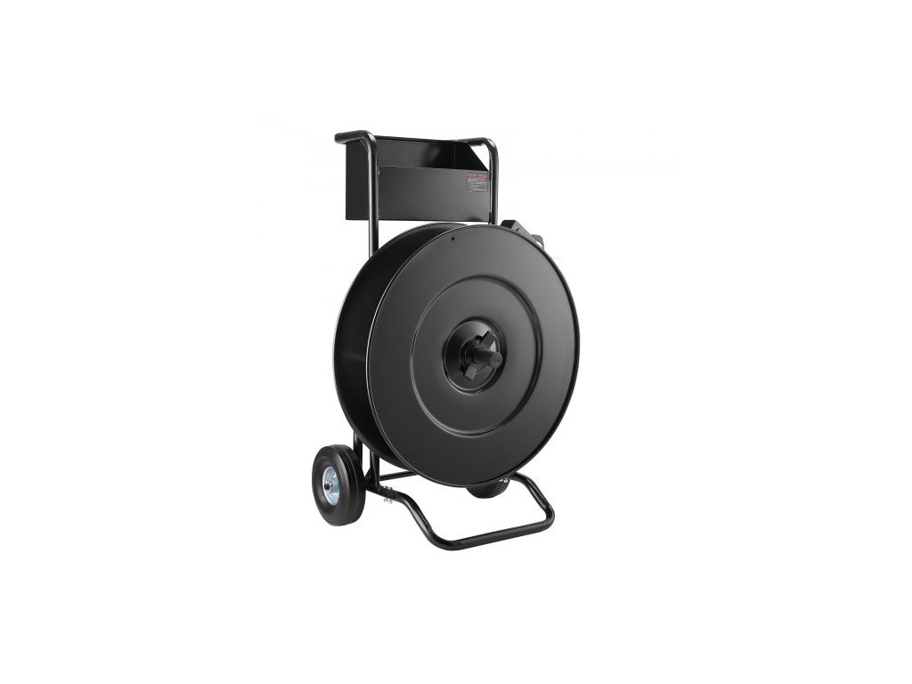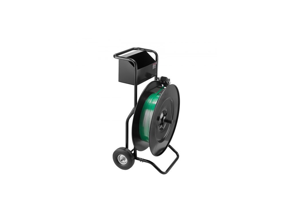 Páskovací vozík , vhodný pro páskovací cívky PET / PP / oceli s rozměrem jádra 20,3/40,6 cm, odolný páskovací dávkovač vybavený vylepšenou bubnovou brzdou, vestavěná prostorná přihrádka na nářadí