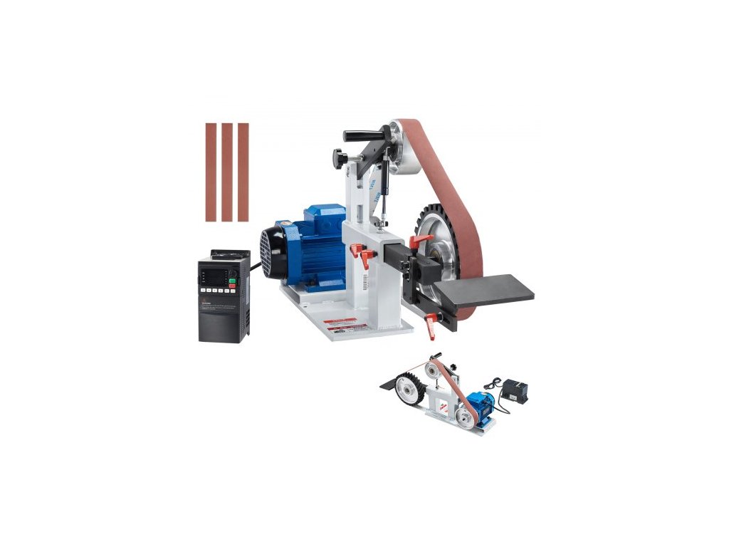 Pásová bruska , leštička s proměnnou rychlostí 72 x 2 palce s VFD, lešticí bruska 1500 W 2 HP se 3 brusnými formami a 3 ks brusných pásů pro obrábění kovů, výrobu nožů