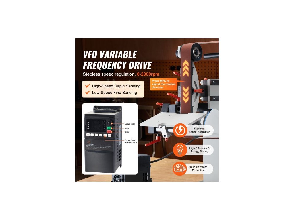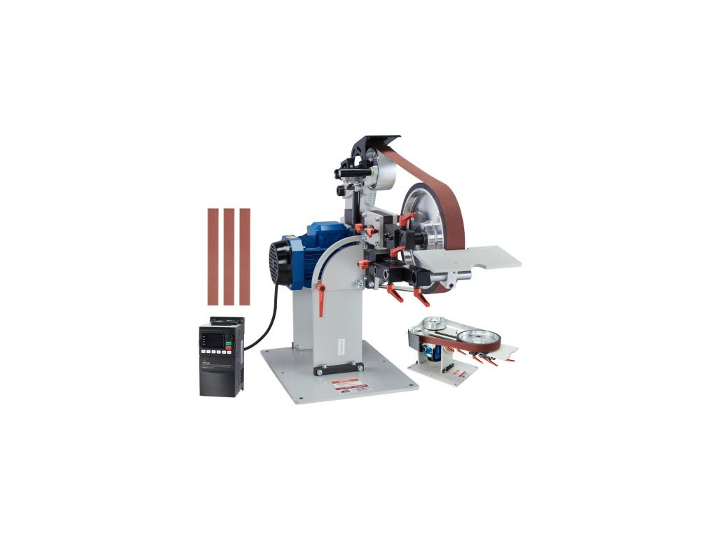 Pásová bruska , leštička s proměnnou rychlostí 72 x 2 palce s VFD, ořezávátko nožů 1500 W se 3 brusnými formami a 3 kusy brusných pásů pro obrábění kovů, kompatibilní s pásy 72"-82*2"