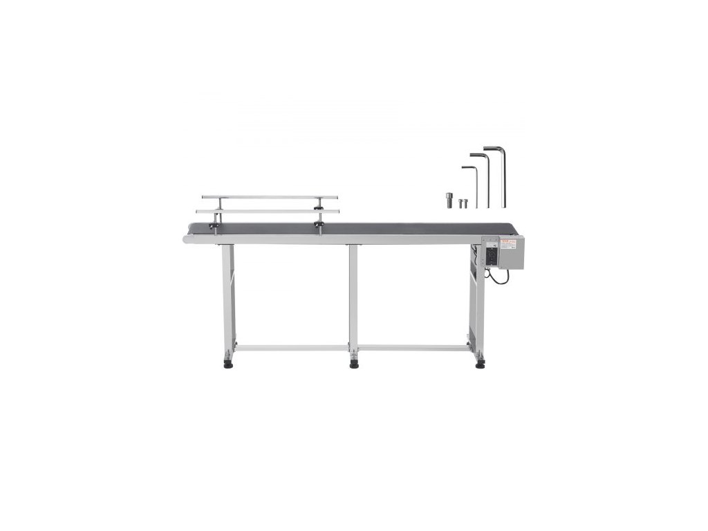 Pásový dopravník , dopravníkový stůl 71 x 7,8 palce, vysoce odolný motorizovaný pásový dopravník z nerezové oceli pro aplikace inkoustového kódování, poháněný PVC pás, antistatická nastavitelná rychlost (dvojité zábradlí)