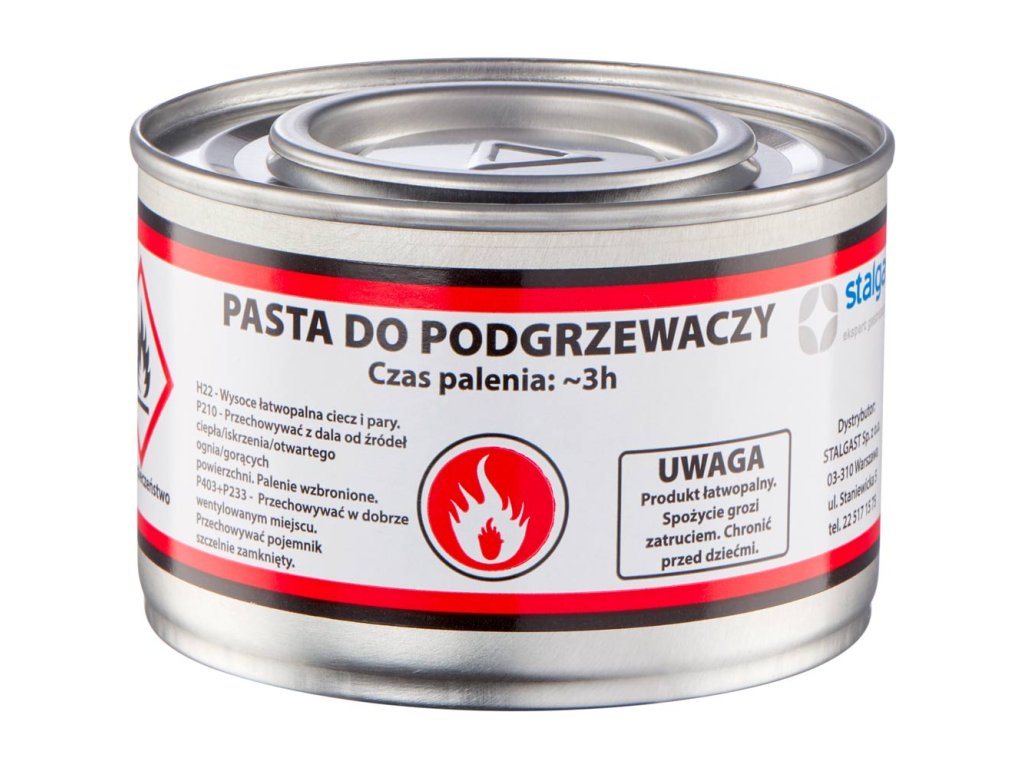 Pasta pro chafingy o objemu 0,2 l od firmy Stalgast s indexem 430002 s vysokou spalovací teplotou během dlouhé doby práce až 4 hodiny je vyrobena z čistého etanolu. V balení je 48 kusů, uvedená cena je však za 1 kus.