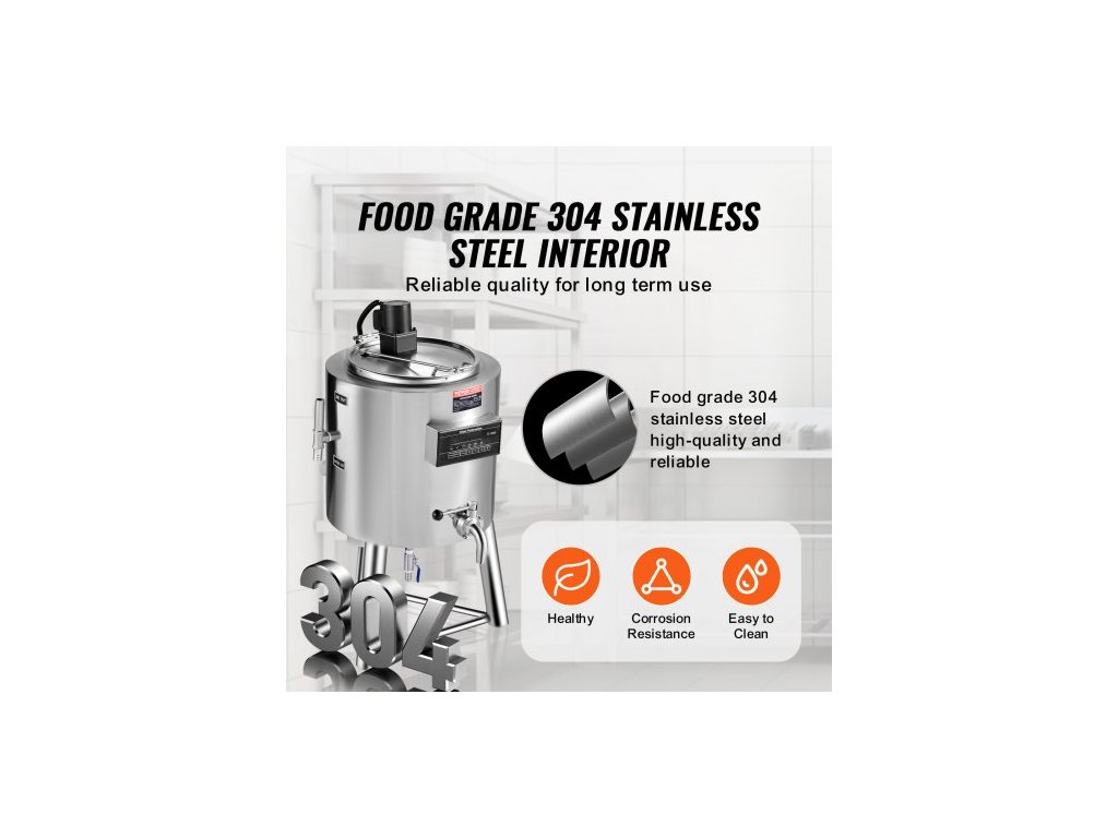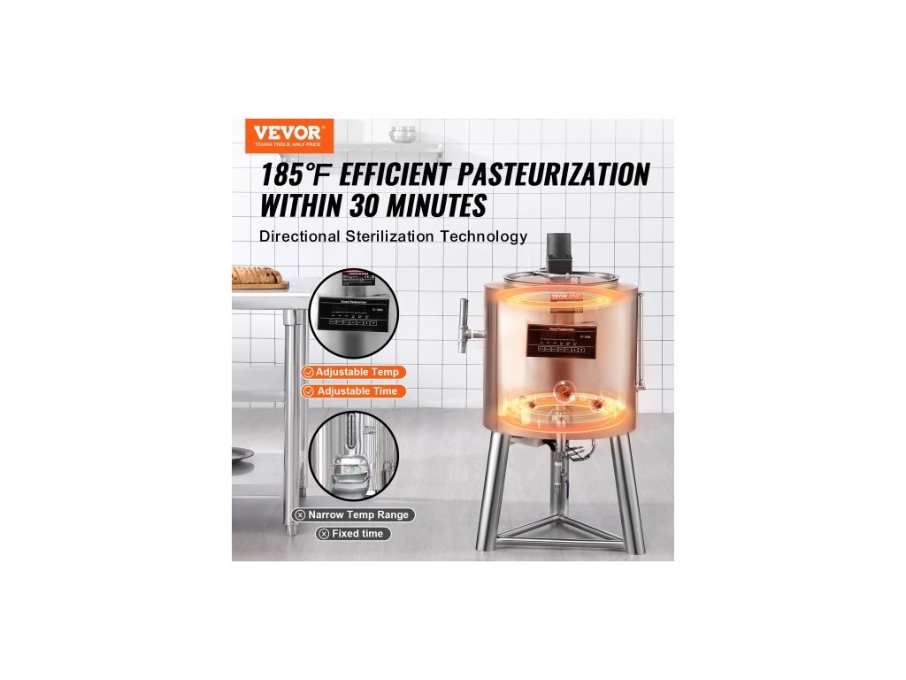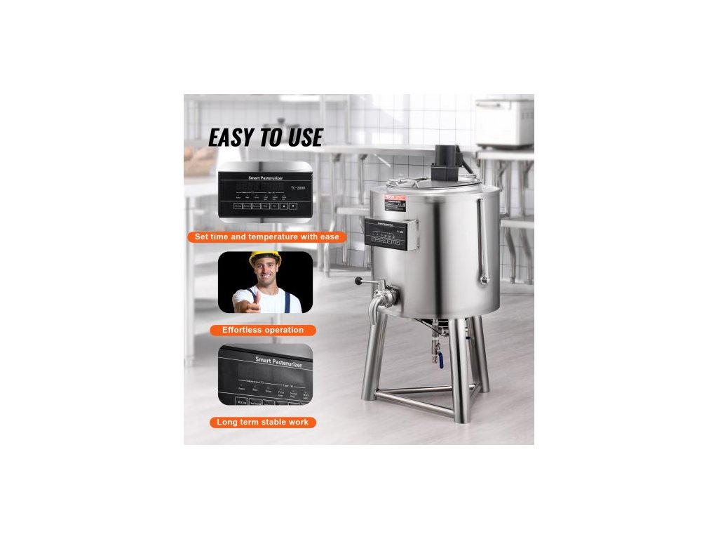pasterizátor mléka 30L, komerční pasterizační stroj na mléko, nerezová ocel potravinářské třídy 304, profesionální pasterizace s regulací času a teploty, pro sterilizaci mléka, šťávy a jogurtu