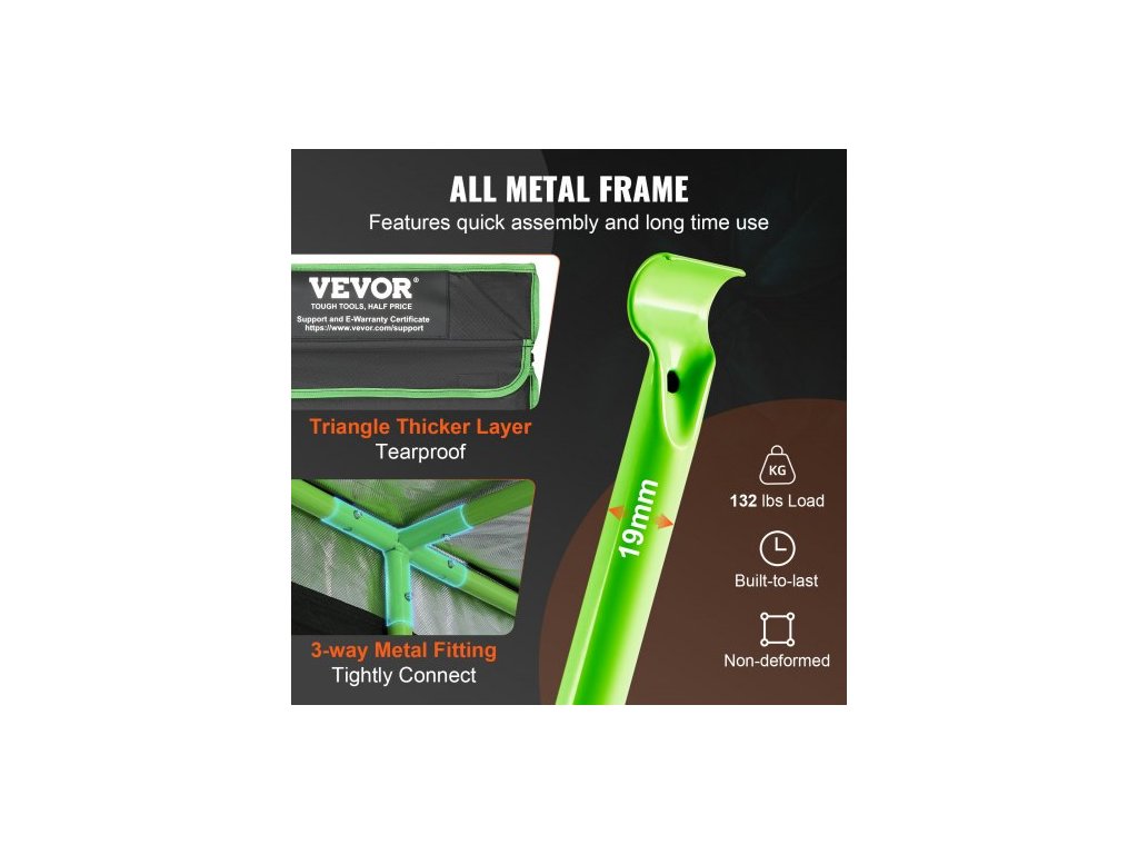 Vnitřní rozměry (D x Š x V): 118 x 118 x 78 palců / 300 x 300 x 200 cm,Vhodný ventilátor: 6/8 palce,Nosnost: 132 lbs / 60 kg,Vhodné pěstební světlo: 400 W,Rozměry položky (D x Š x V): 120 x 120 x 80 palců / 305 x 305 x 203 cm,Barva: Černá + zelená, Číslo modelu položky: GT600D120, Materiál potahu: Oxfordská tkanina 600D, Materiál rámu: Ocel 19 mm, Rozměry dveří (D x Š): 54 x 52 palců / 138 x 133 cm, Hmotnost položky: 77 liber / 35 kg