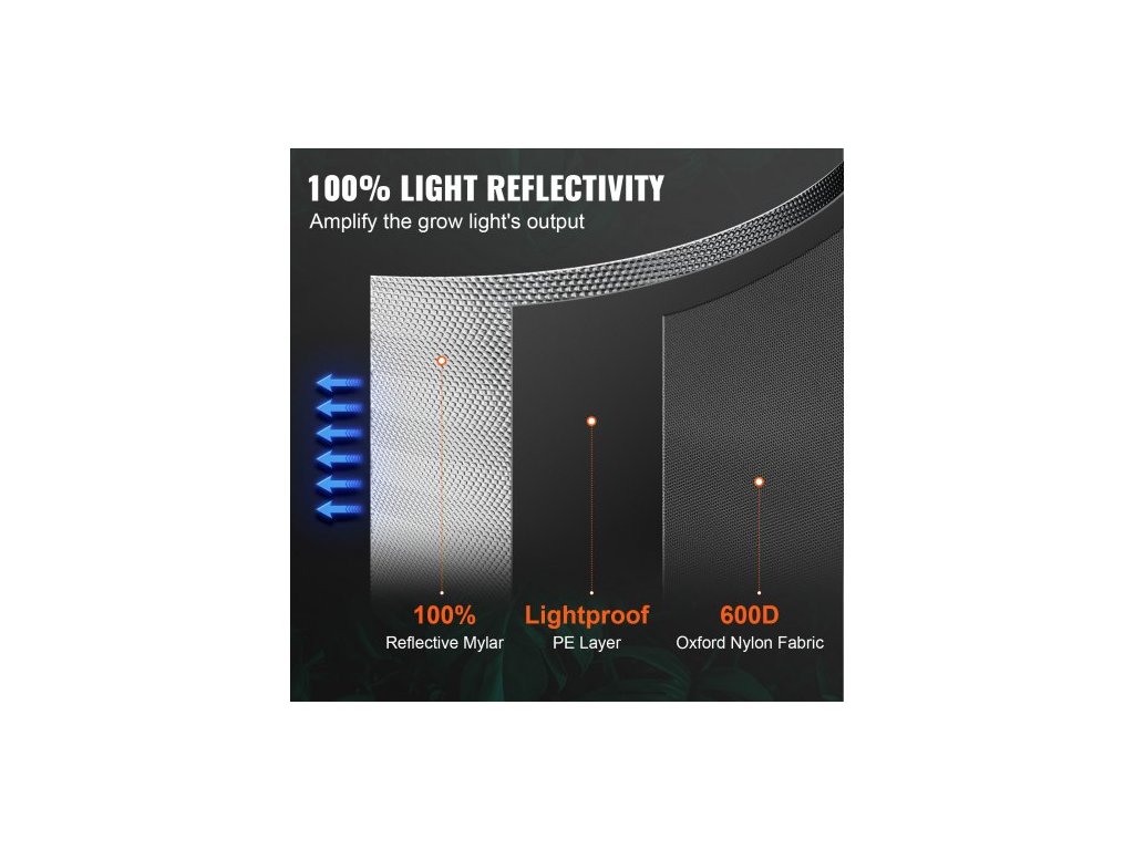 Pěstební stan 10x10, 120'' x 120'' x 80'', vysoce reflexní hydroponický pěstební stan z mylaru 600D s pozorovacím okénkem, brašnou na nářadí a podlahovou miskou pro pěstování pokojových rostlin