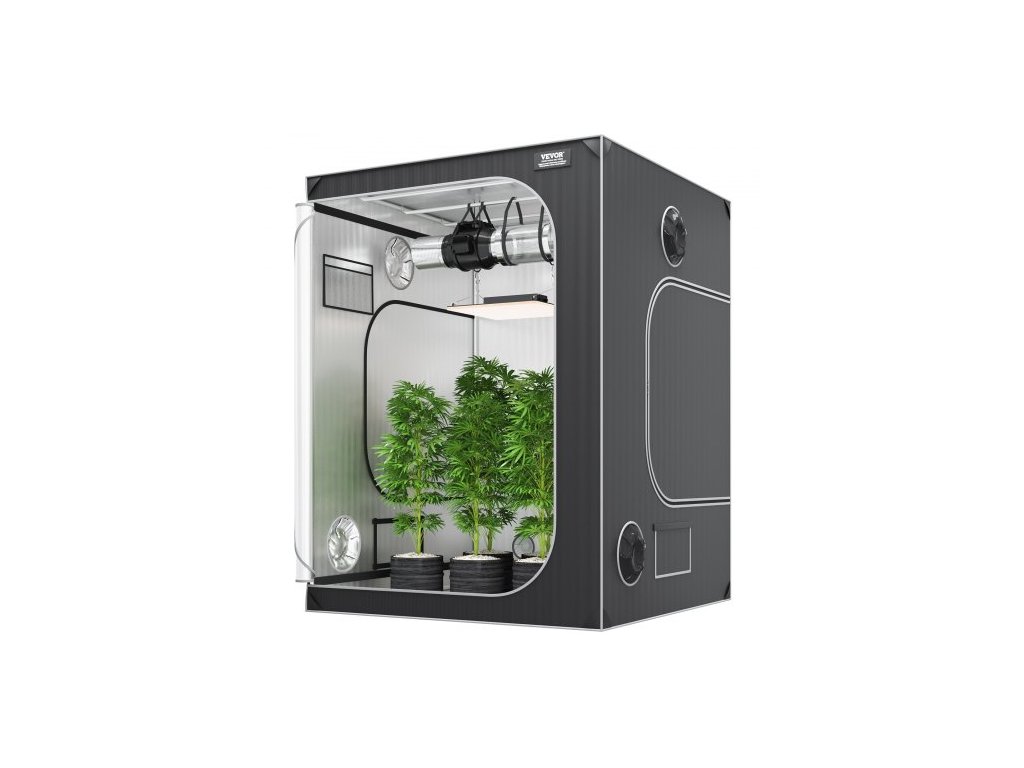 Vnitřní rozměry (D x Š x V): 59 x 59 x 78 palců / 150 x 150 x 200 cm,Vhodný ventilátor: 4/6 palce,Nosnost: 132 lbs / 60 kg,Vhodné pěstební světlo: 200-300 W,Rozměry položky (D x Š x V): 60 x 60 x 80 palců / 152 x 152 x 203 cm,Barva: Černá + šedá,Číslo modelu položky: GT2000D60,Materiál potahu: Oxfordská tkanina 2000D,Materiál rámu: Ocel 22 mm,Rozměry dveří (D x Š): 70 x 51 palců / 178 x 130 cm,Hmotnost položky: 35 lbs / 16 kg