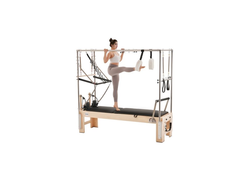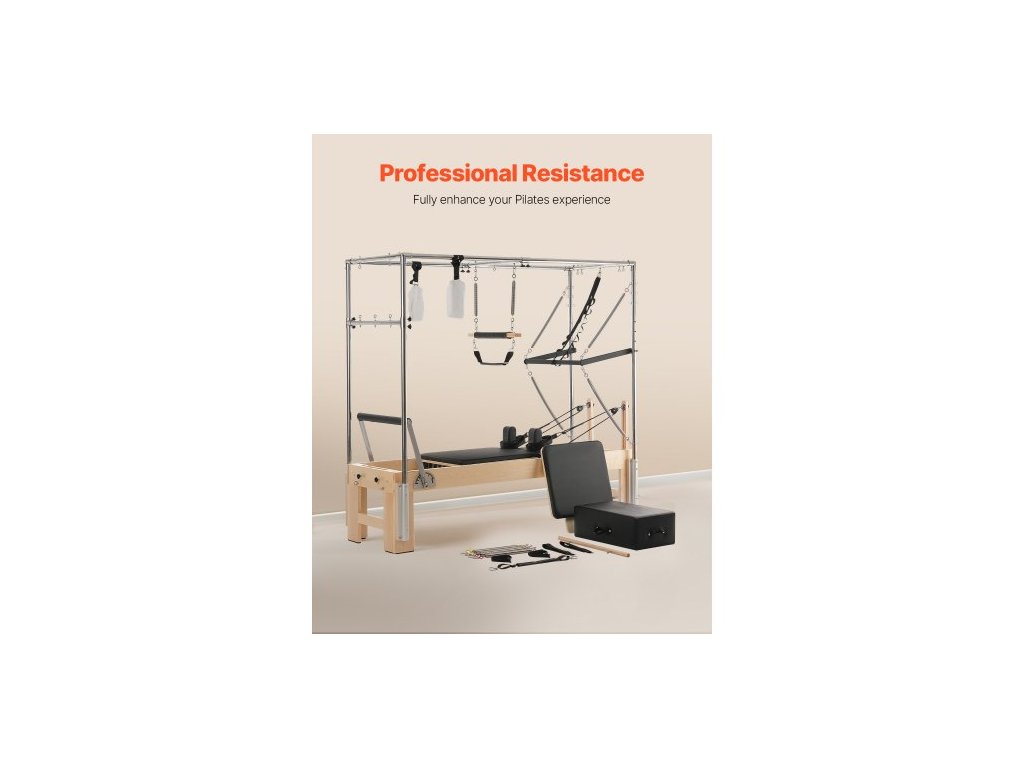 Pilates Reformer, dřevěný stroj na pilates do domácí posilovny, posilovací stroj s dvojitým odporem, reformer box, skákací deska, pro pokročilé uživatele i začátečníky, nosnost až 400 liber (180 kg)