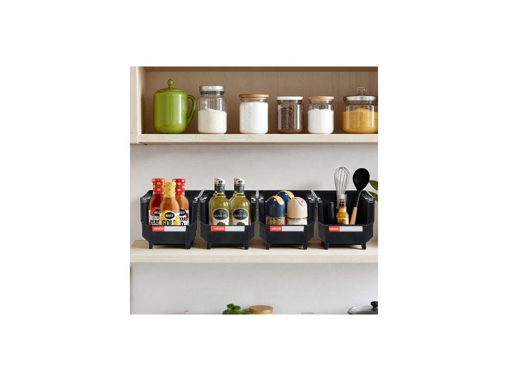 Plastové stohovatelné úložné boxy , 27,6 x 14 x 13 cm (balení po 8 ks), plastové kontejnery na organizaci a úložné boxy do skříně, garáže, na drobné díly, kancelářské potřeby a další příslušenství, černé
