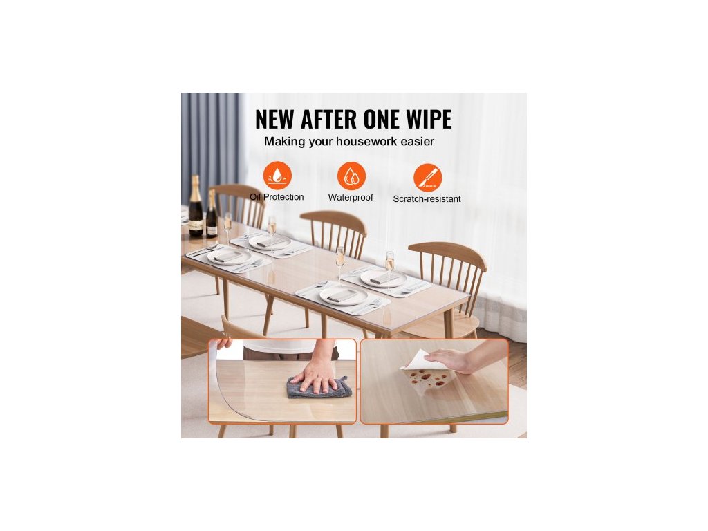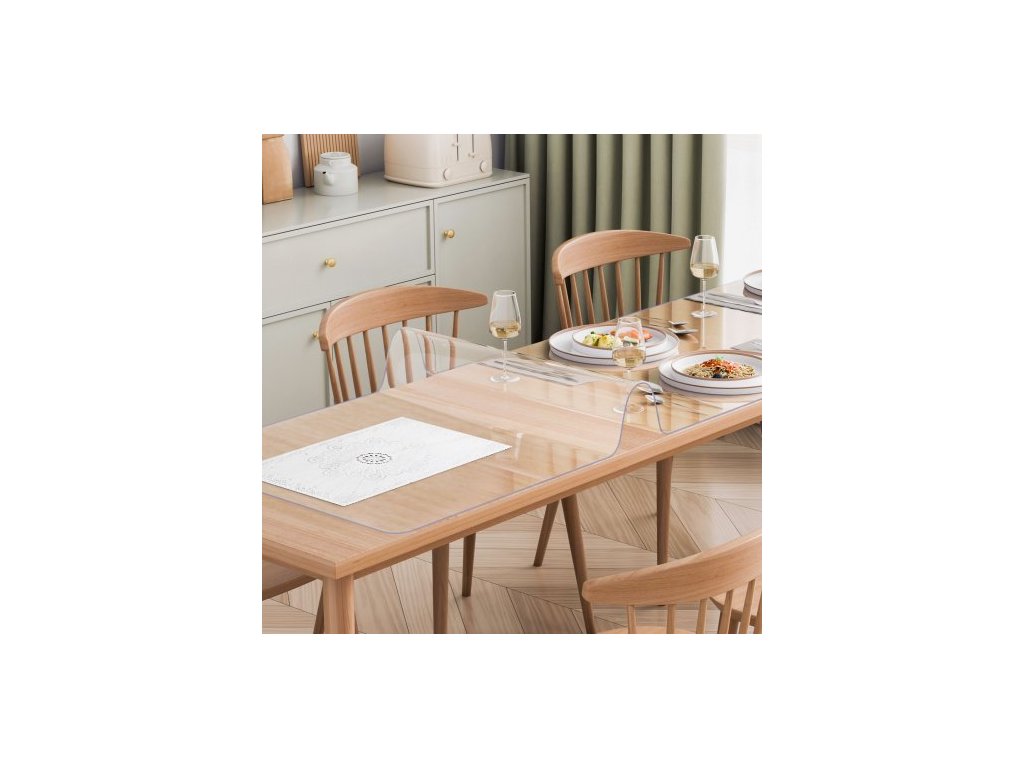 Plastový kryt na stůl , 24 x 96 palců, 1,5 mm silný průhledný chránič stolu, obdélníková PVC podložka na stůl, vodotěsný a snadno čistitelný ubrus, pro kancelářský, komodu, jídelní, noční stolek