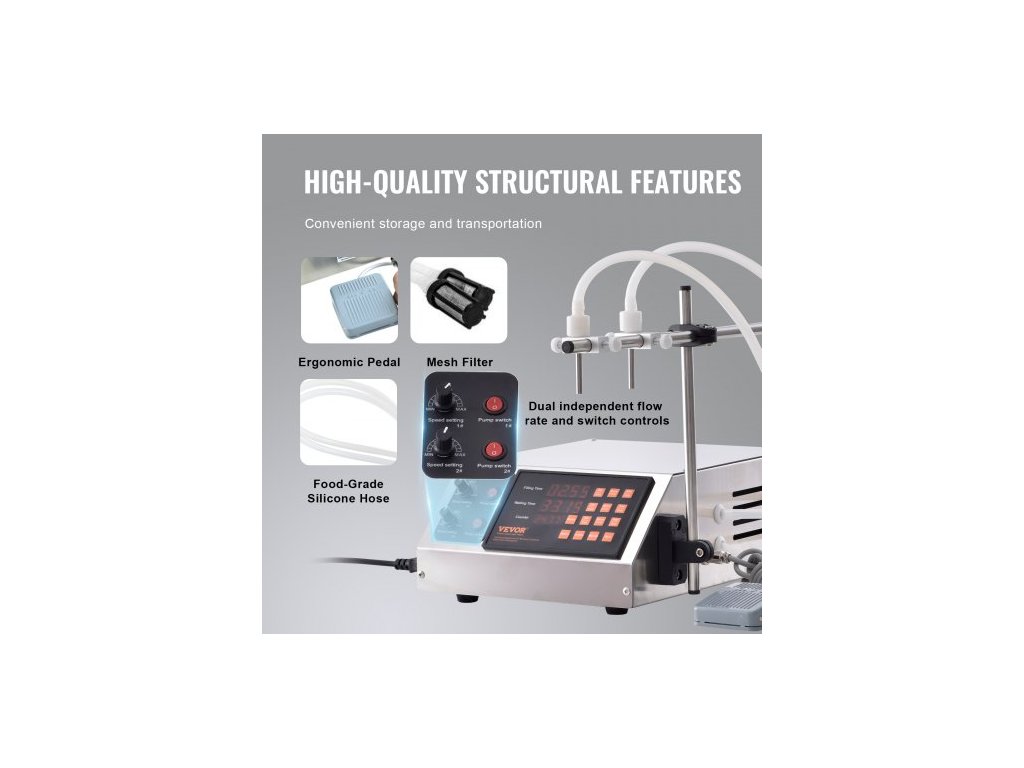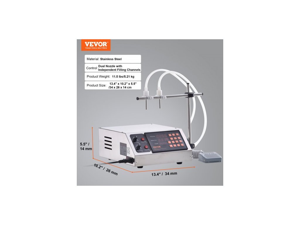 Ovládání: Dvojitá tryska s nezávislými plnicími kanály,Číslo modelu položky: SYD-580-V2,Hmotnost výrobku: 5,21 kg,Materiál: Nerezová ocel,Rozměry výrobku: 34 x 26 x 14 cm