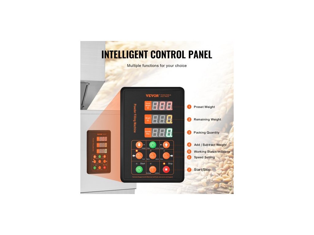 Rozsah balení: 0,022-2,2 lbs/10-1000 g, Číslo modelu položky: F-1000-V2, Hmotnost výrobku: 57,51 lbs/26,09 kg, Příkon: 83 W, Rozměry výrobku: 19,61 x 11,89 x 50,39 palce/49,8 x 30 x 128 cm