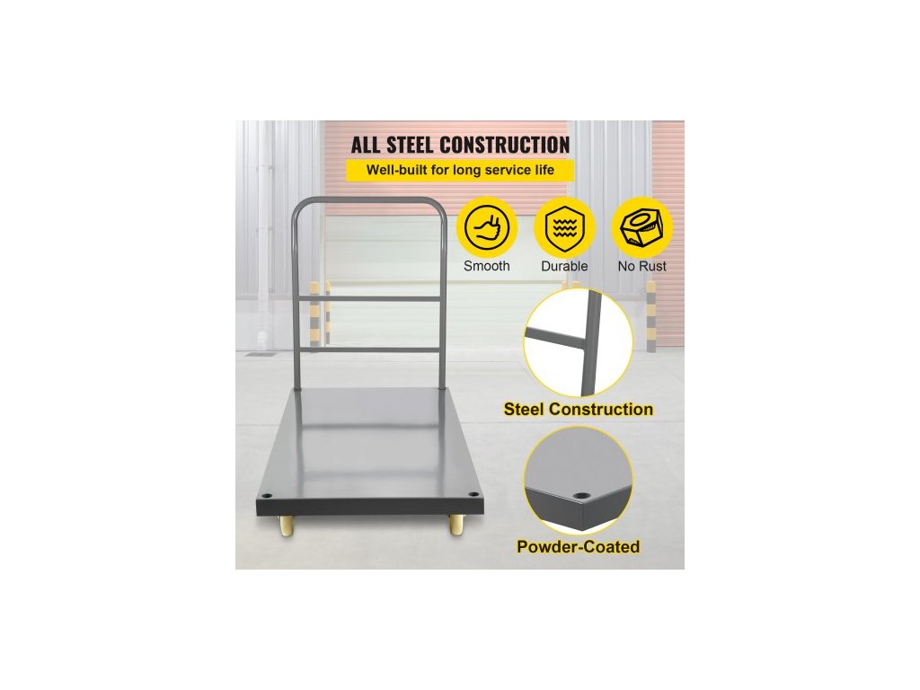 Plošinový vozík , nosnost 907,2 kg, ocelový plošinový vozík, délka 119,4 cm x šířka 61 cm x výška 81,3 cm, ruční vozík s nylonovými kolečky 12,7 cm, robustní vozíky pro přepravu zavazadel