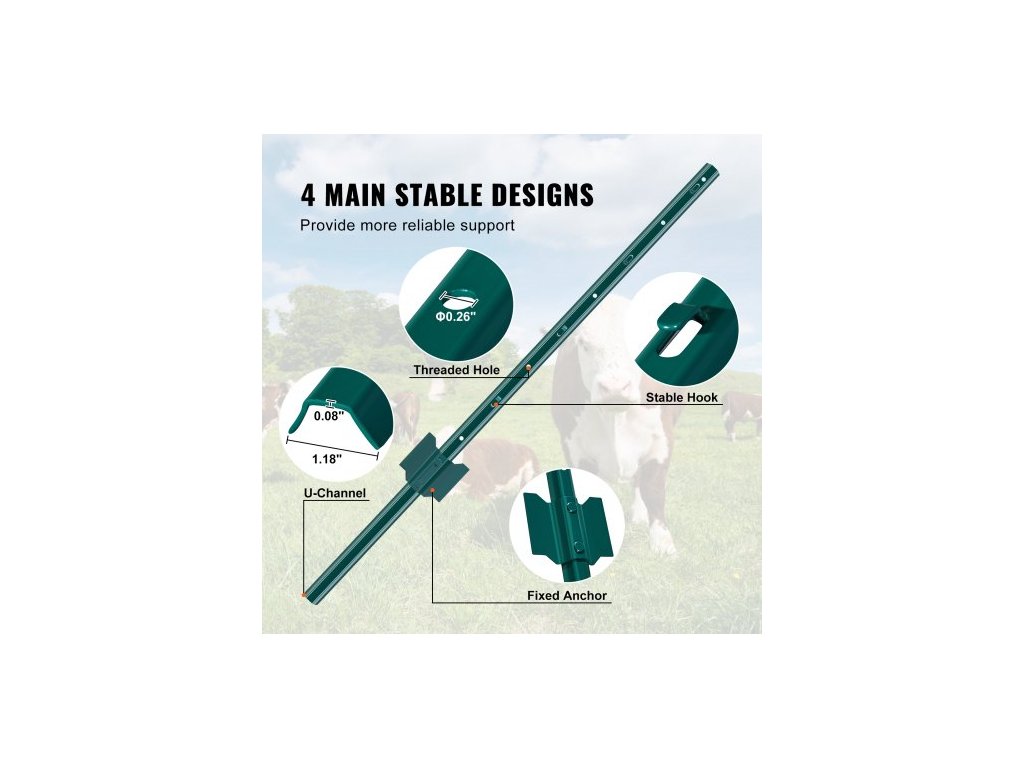 Množství v sadě: 10 ks,Délka sloupků: 3' / 91,44 cm,Číslo modelu položky: 10-3 stopy,Hmotnost výrobku: 12,79 liber / 5,8 kg,Rozměry výrobku: 3,41" x 0,59" x 35,98" / 86,5 x 15 x 914 mm,Hlavní materiál: Uhlíková ocel Q235