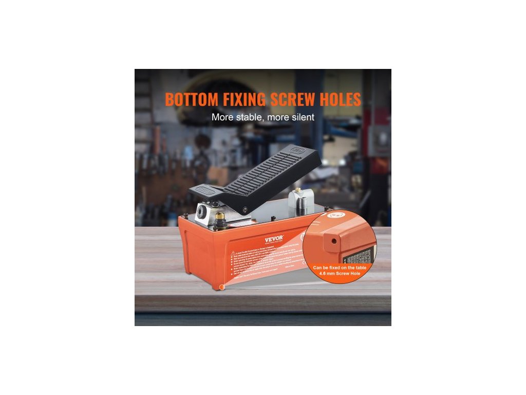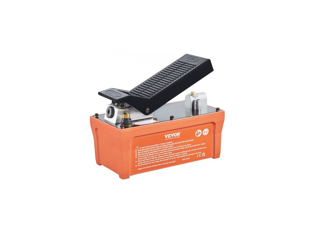 Pneumatické hydraulické čerpadlo , nádrž 6895 barů, 1,9l, výstup oleje NPT 10 mm, vstup NPT 6,4 mm, trubka 2 m, nožně ovládané hydraulické čerpadlo, vzduchový pedál pro stroje na karoserii a tažné sloupky, oranžová