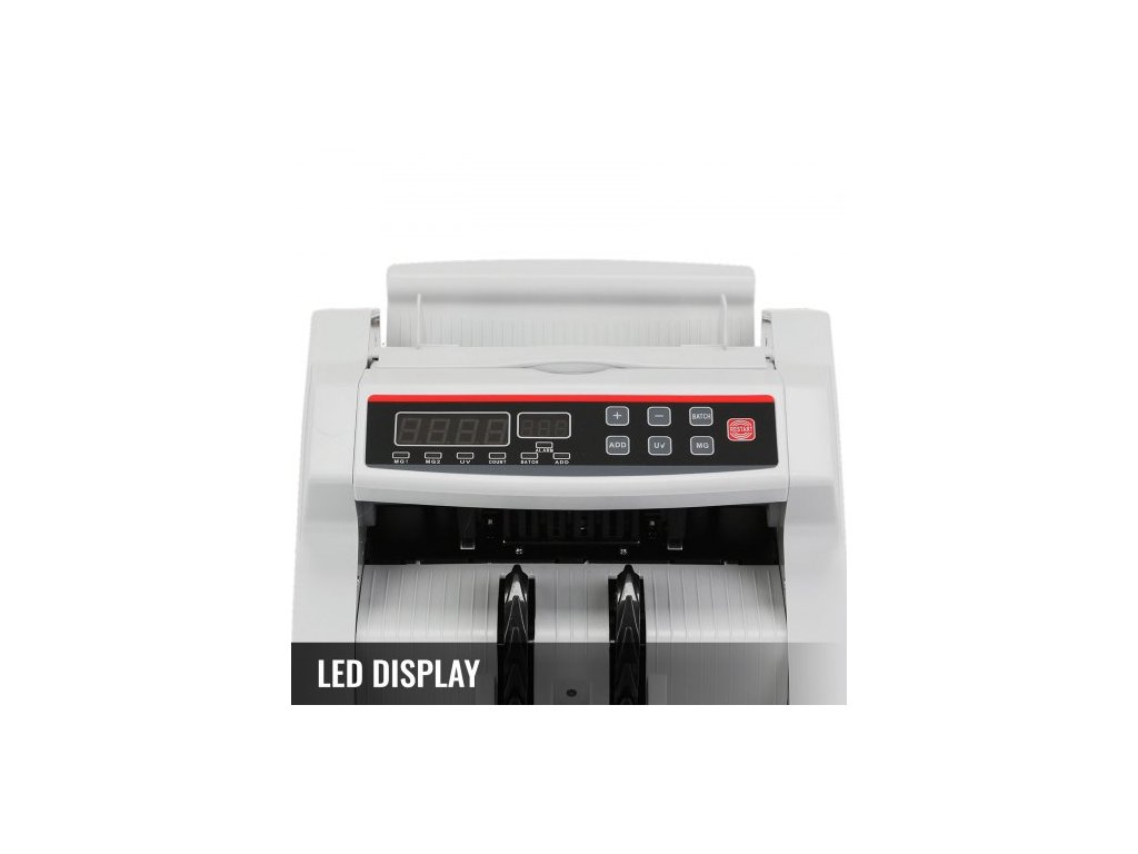 Počítadla bankovek Počítadla peněz s LED displejem Profesionální počítačka bankovek s detektorem falešných bankovek, UV/MG, 1000 bankovek/minutu, počítá pouze počet listů