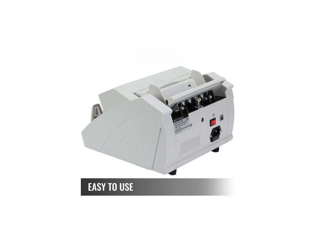 Kapacita násypky: >130 ks (skutečná kapacita až 200 ks dle popisu jiných prodejců),Systém podávání: Válečkový třecí systém,Rychlost počítání: 1000 ks/min,Napětí: 20V 50HZ,Barva: Bílá,Počitatelná velikost bankovek: Vhodné pro GBP i papírové bankovky z jiných zemí,Kapacita stohovače: >130 ks (skutečná kapacita až 200 ks dle popisu jiných prodejců),Příkon: <80W,Hmotnost: 7 kg/15,43 lbs,Rozměry (D*Š*V): 23,5x26x17 cm/9,25"x10,24"x6,69"