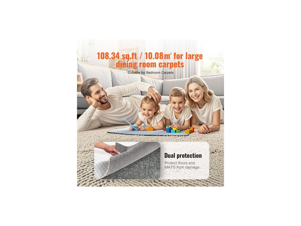 Podložka pod koberec bez protiskluzové úpravy, ochranná polstrovaná podložka pod koberec, 9' x 12', 1/4" silná, 100% čistá polyesterová plsť, 10-11m^2 Prémiová pohodlná podložka pod koberec pod nohy pro všechny podlahy, šedá