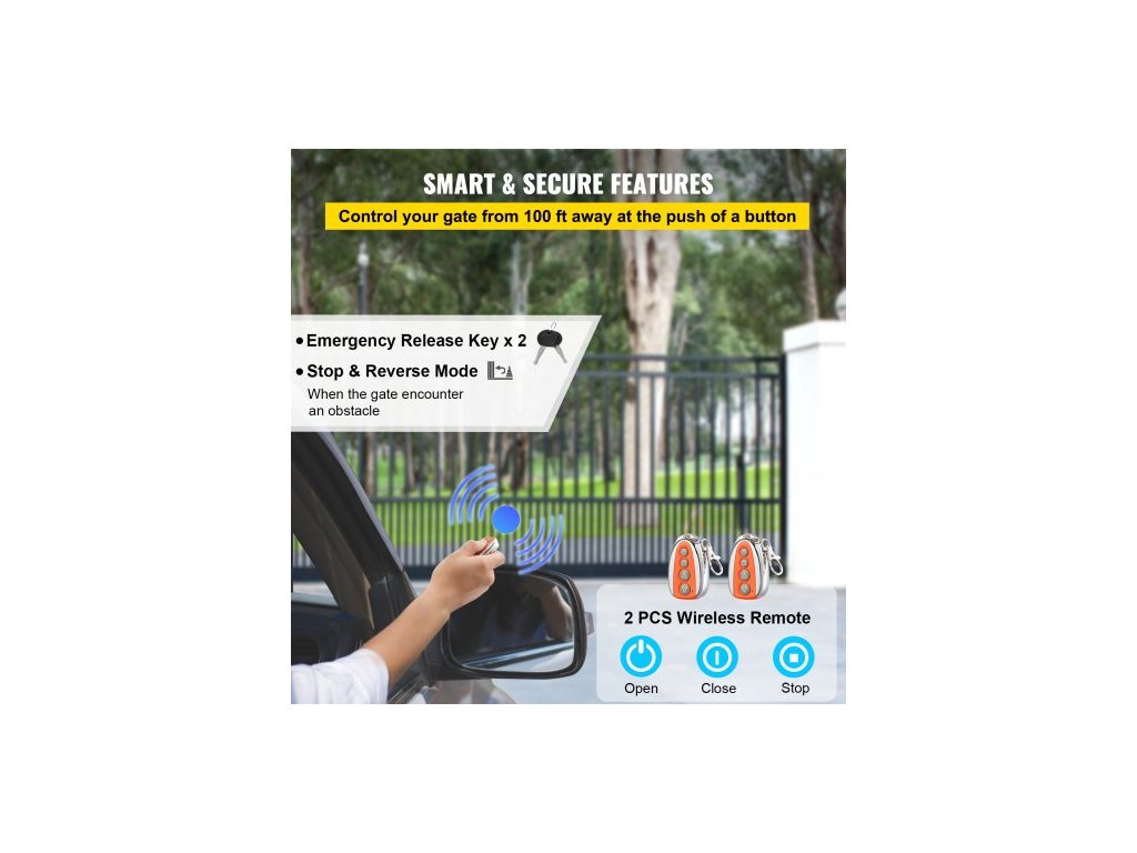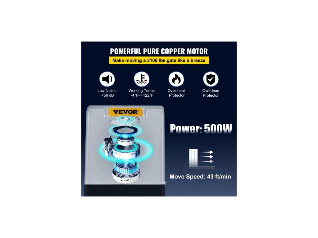 Pohon posuvné brány , AC1400 3100LBS, se 2 dálkovými ovladači, sada hardwaru pro pohon brány pro zabezpečení, rychlost pohybu 43 stop za minutu, elektrický motor pro rolovací posuvnou bránu