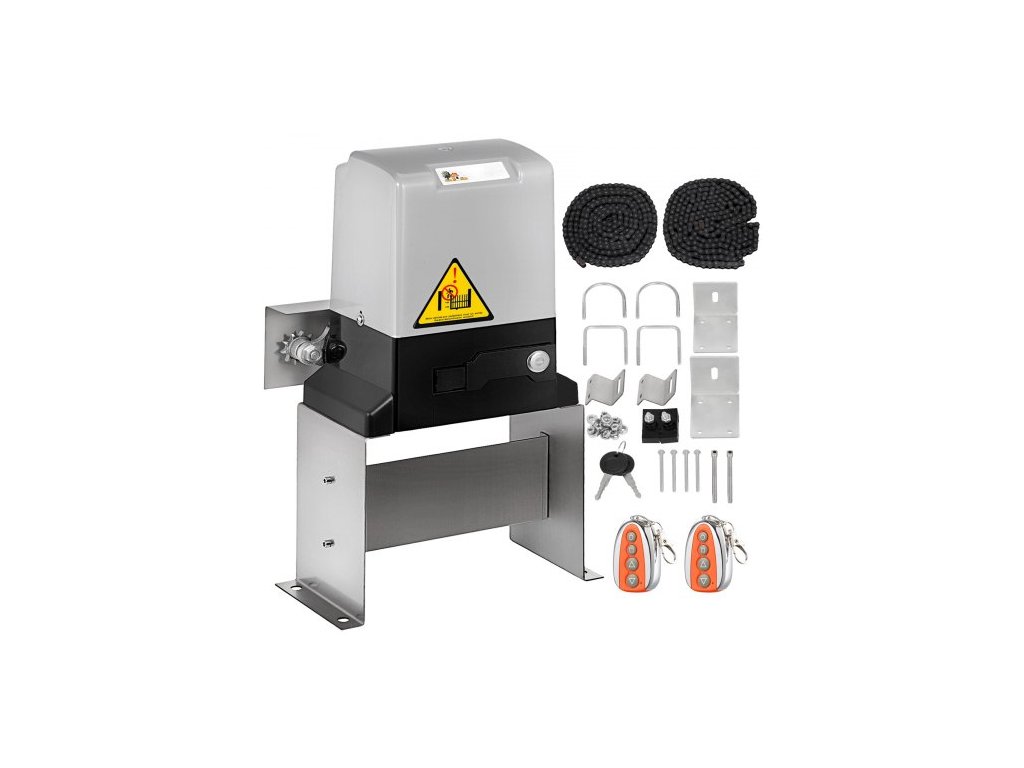Pohon posuvné brány, AC1400 1500 kg, se 2 dálkovými ovladači, sada hardwaru pro pohon brány pro zabezpečení, rychlost pohybu 12,5 m za minutu, elektrický motor pro posuvnou bránu s rolovacím mechanismem