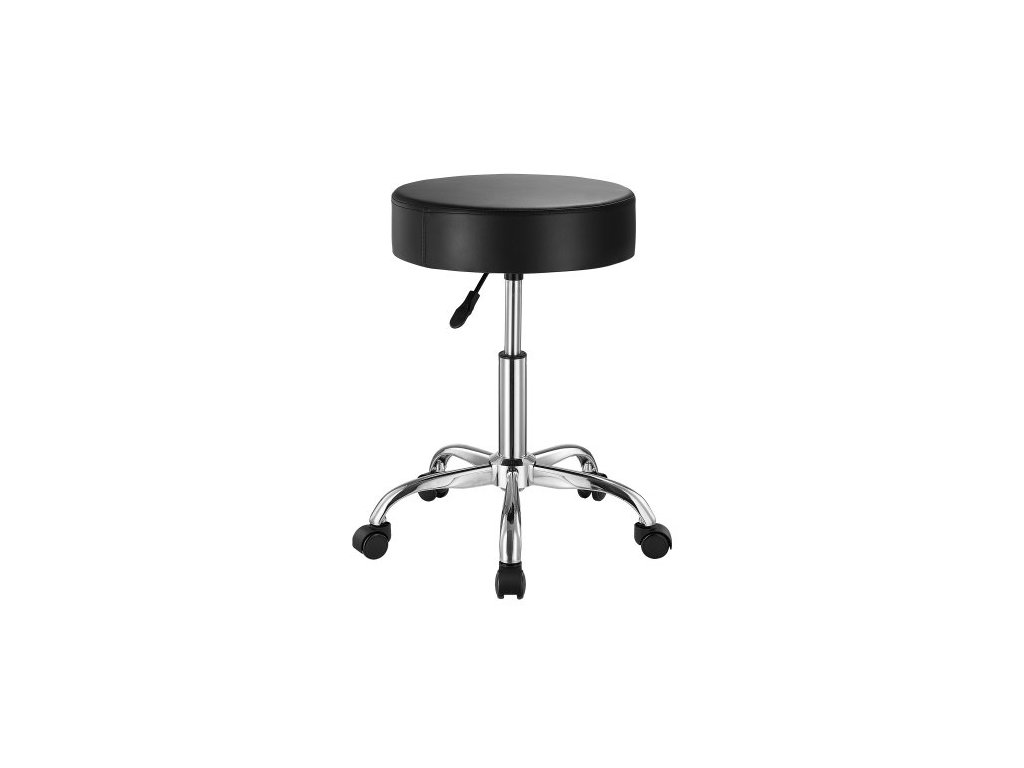 Pojízdná stolička s kolečky, nosnost 450 liber, kulatá pojízdná stolička, výškově nastavitelná, zesílená PU kůže, otočná stolička pro salon, lázně, masáže, tetování, kliniky, černá